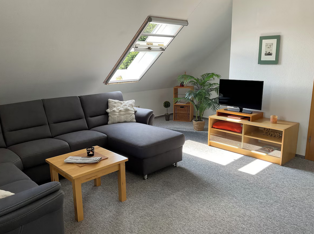 Das Wohnzimmer ist schön hell und bietet viel Platz